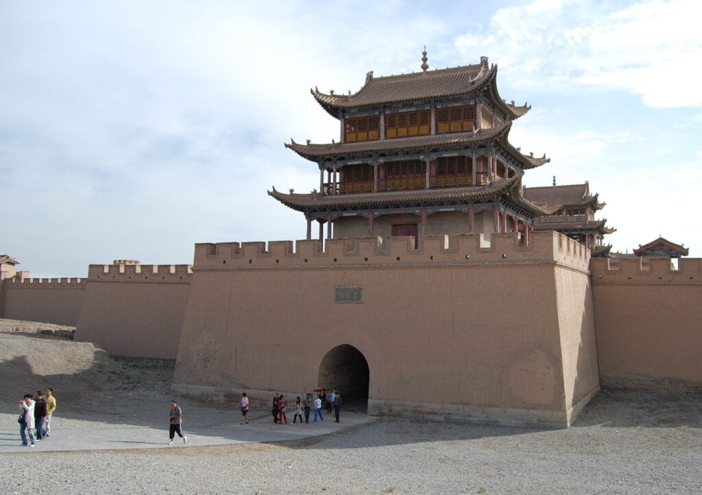 Jiayuguan Pass, constructed in 1372 during the Ming Dynasty, stands as the westernmost fortress of the Great Wall, symbolizing the end of Chinese civilization and the beginning of the vast Gobi Desert. This fortress was pivotal not only for military defense but also as a key waypoint on the ancient Silk Road, facilitating trade and cultural exchanges between China, Central Asia, and Europe.